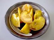 火曜日に漬けた柿は、まだ大半は硬いけど、ヘタを取り除いたあたりの皮の無い部分はちょっとブヨブヨってしています。