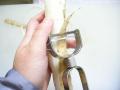 ちょっと古くなって端のほうが硬くなってしまっていたので切り落とし、皮をむきます。