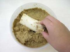 次に色がおちないようにぬか床をよくすり込みました。