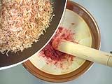 5.削り節と梅を混ぜます。