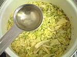 キャラウェイシードとベイリーフを加え、弱火にして煮ます。 |