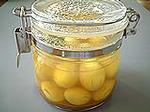 冷蔵庫で漬け込んで、6日が経過しました。卵は、見事に黄色に染まっています。