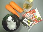 ニンジン:2本、砂糖:40g、酢:80cc、塩6g、水:20cc、刻み昆布:少々、輪切り唐辛子:少々、ローリエ:小さいもの1枚