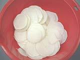 カブの皮をむき、スライサーで薄い輪切りにします。