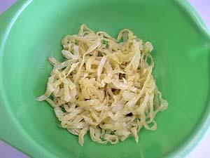 2. 30分くらいして、水を切り、食べやすいように適当な長さに切りました。 |