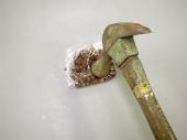 2. 熱いうちに、唐辛子と花椒をラップなどで包んで、カナヅチでたたきます。