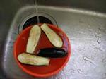 1.なすはへたをとり、たてに4〜6つ割にする。