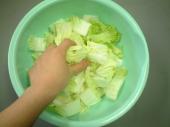 ?白菜を刻んで塩もみします。