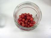 週間で食べられるのに冷蔵庫の奥のほうで放置されっぱなしになっていました。昨年、ラズベリーを漬けたときとほぼ同じレシピで行ったのですが、すっぱい匂いが少なく感じました。というかお酒っぽいんです。一瞬、ゆすらうめ種のビン隣が得たかな??と思ってしまいました。今回は白ワインの量が多かったのでしょうか?白ワインを入れたのにちょっと赤ワインのような香りもします。ゆすらうめの真っ赤な色はいつのまにかピクルス液にしっかり移り、うすピンク色になっています。なんか小梅みたいです。