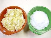 1. ゆずの中身は、種をていねいに取り除いて、小さめに切ります。