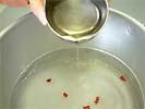 鍋に酢・水・砂糖・厚生塩・赤唐辛子を入れて沸騰させます。